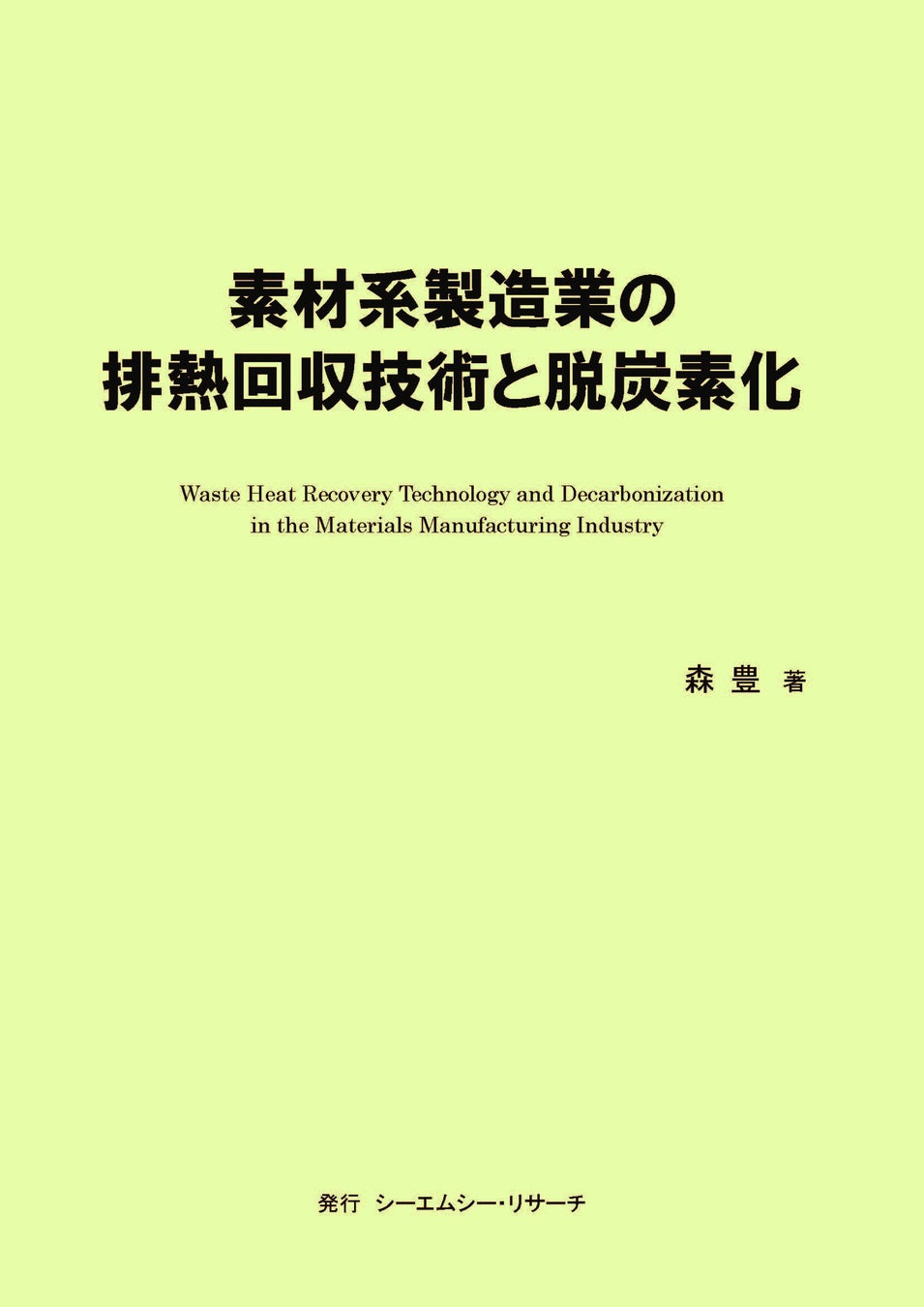 【新刊案内】素材系製造業の排熱回収技術と脱炭素化 著者:森 豊 発行:(株)シーエムシー・リサーチ