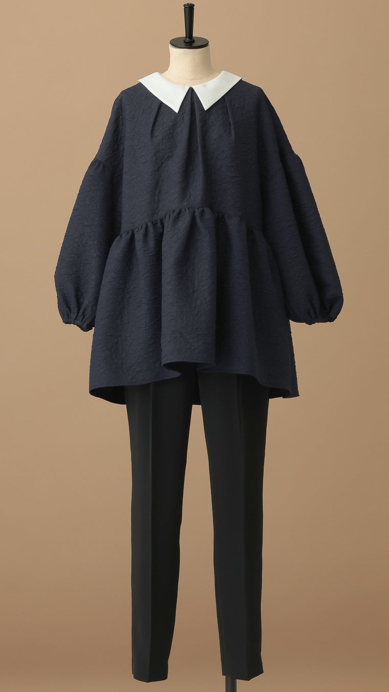 取り外し可能な2WAY襟で、華やかさと洗練さを切り替えられるデザイン。