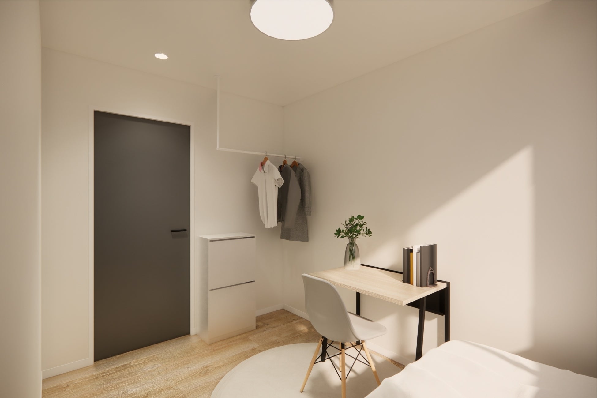 人とシェアする時間だけでなく、自分と向き合う時間も大切にしたい方向けに、居室として1Rのプライベート空間を確保。居室にはトイレ・シャワー・キッチンが用意されております。