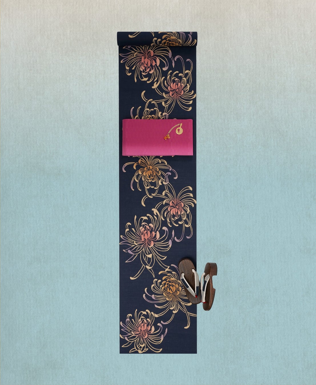 透け感のある綿絽生地や凹凸のある紅梅生地で、見た目も着心地も清涼感を楽しみたい真夏。ゆかたのカラーとしては落ち着いたブルーが主役になる時期です。ビタミンカラーを小物で加えると、モダンな雰囲気に仕上がります。暑い夏の日でもサラッと涼しく着用いただける吸水速乾に優れた素材のゆかたもバリエーション豊かに登場し、人気を集めています。