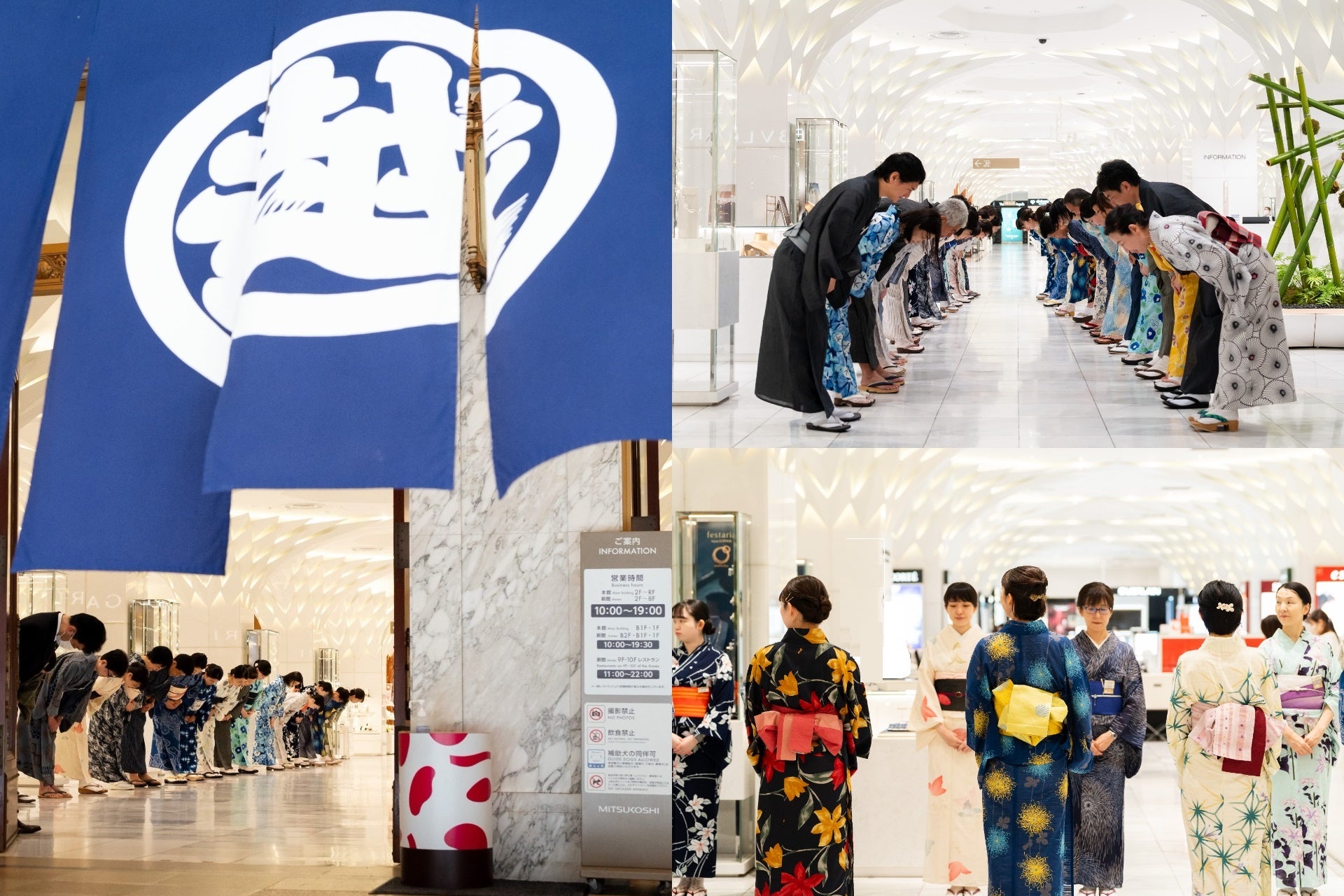 7月7日 七夕・ゆかたの日に日本橋三越本店の従業員約30名が夏の風物詩「ゆかた」の魅力をアピール。涼しげなゆかた姿でお客さまをお迎えします