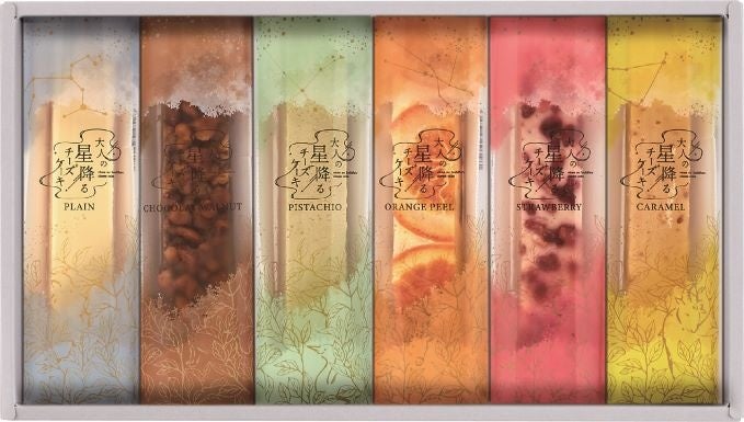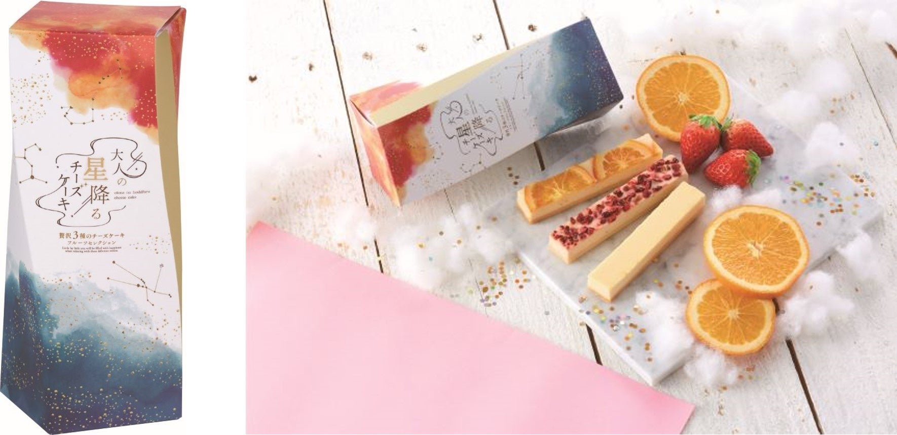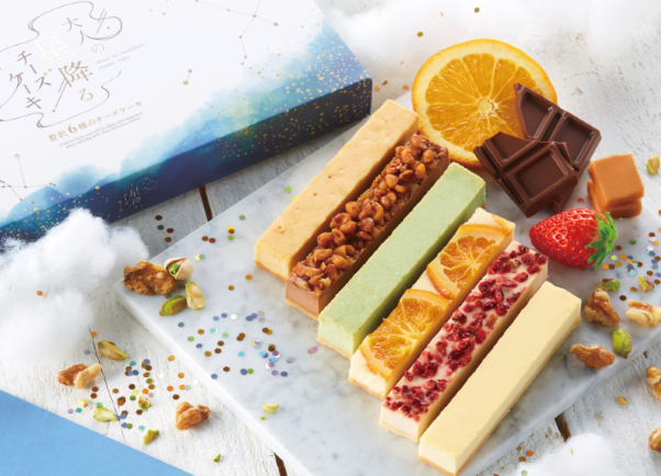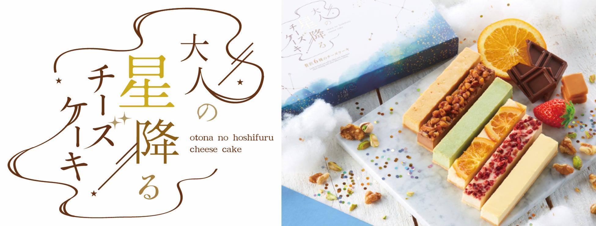 そんな想いからチーズケーキ専門店「大人の星降るチーズケーキ」は生まれました。30年以上チーズケーキをつくり続けたシェフがこだわり抜いたチーズケーキは、北海道産のクリームチーズを贅沢に使用し、5つの素材と組み合わせたことで新たな味わいが楽しめるスティック状のチーズケーキになりました。大人の夜のスイーツタイムに最適です。