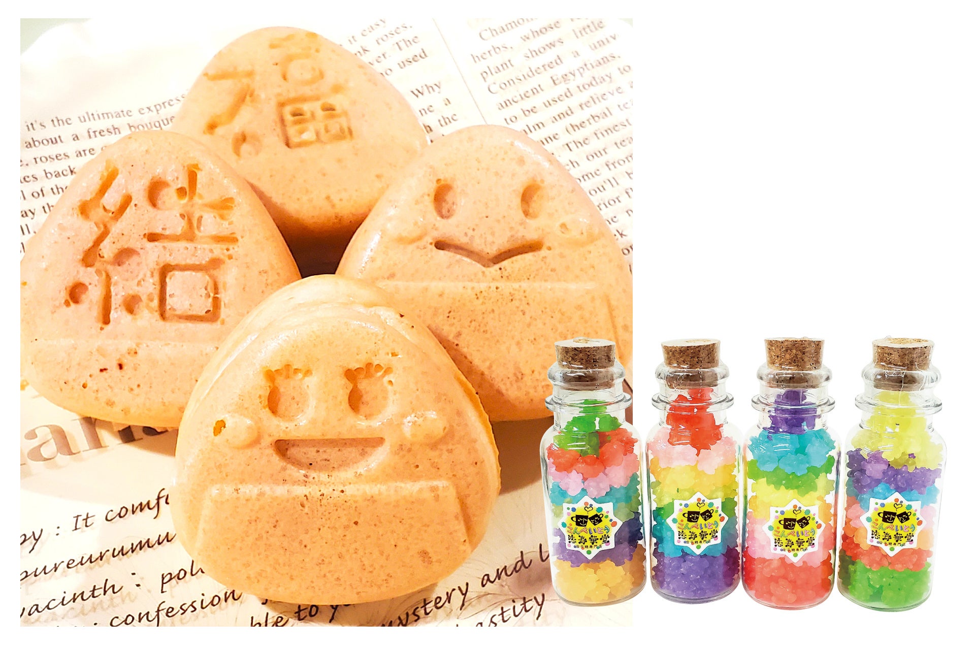 フルーツやサイダー味の金平糖を虹色に詰め合わせた新商品で、プラスチック製のボトルが特徴!また、恋むすび焼きは独自のもっちり生地にあんを挟んで焼きました。