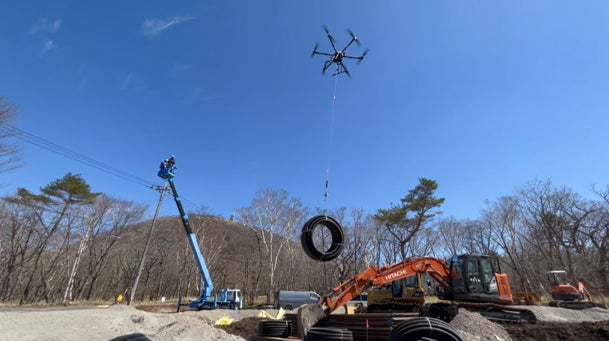 三井金属資源開発の工事にて大型ドローン運搬を実施 群馬県山間部で7.1トンの資材を3日半で運搬