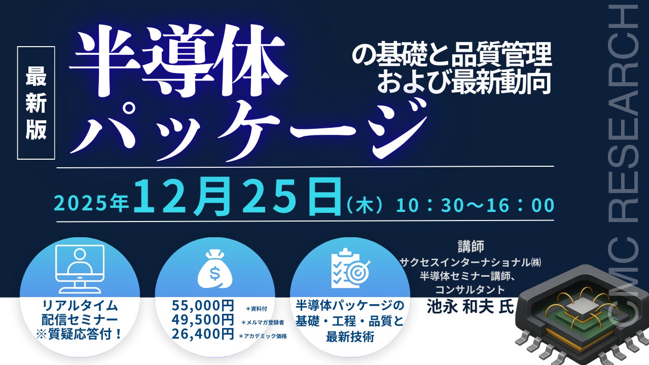 【ライブ配信/ZOOM】「半導体パッケージの基礎と品質管理および最新動向」セミナー開催!12月25日(木)主催:(株)シーエムシー・リサーチ