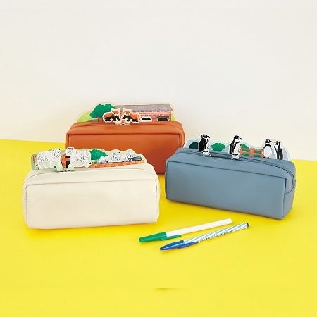 東武動物公園にあるレッサーパンダ舎、ホワイトタイガー舎、ペンギン舎の背景と動物たちを描いたポーチです。