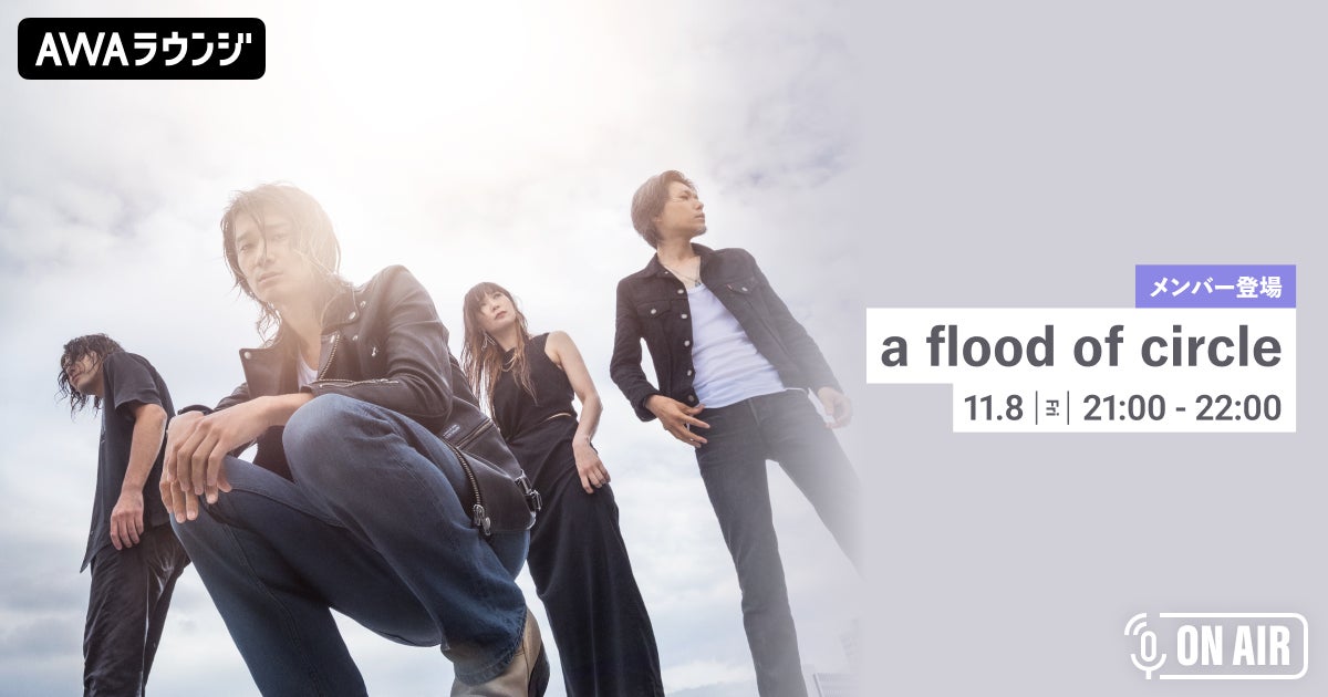 AWA株式会社(本社:東京都港区、代表取締役CEO:冨樫晃己)が運営する、サブスクリプション型(定額制)音楽ストリーミングサービス「AWA(アワ)」は、2024年11月8日(金) 21:00~22:00の1時間に渡り、無料で誰でも参加できるオンライン空間「ラウンジ」で、a flood of circleのメンバーが音声とチャットでリアルタイムに登場参加するAWAラウンジを開催いたします。