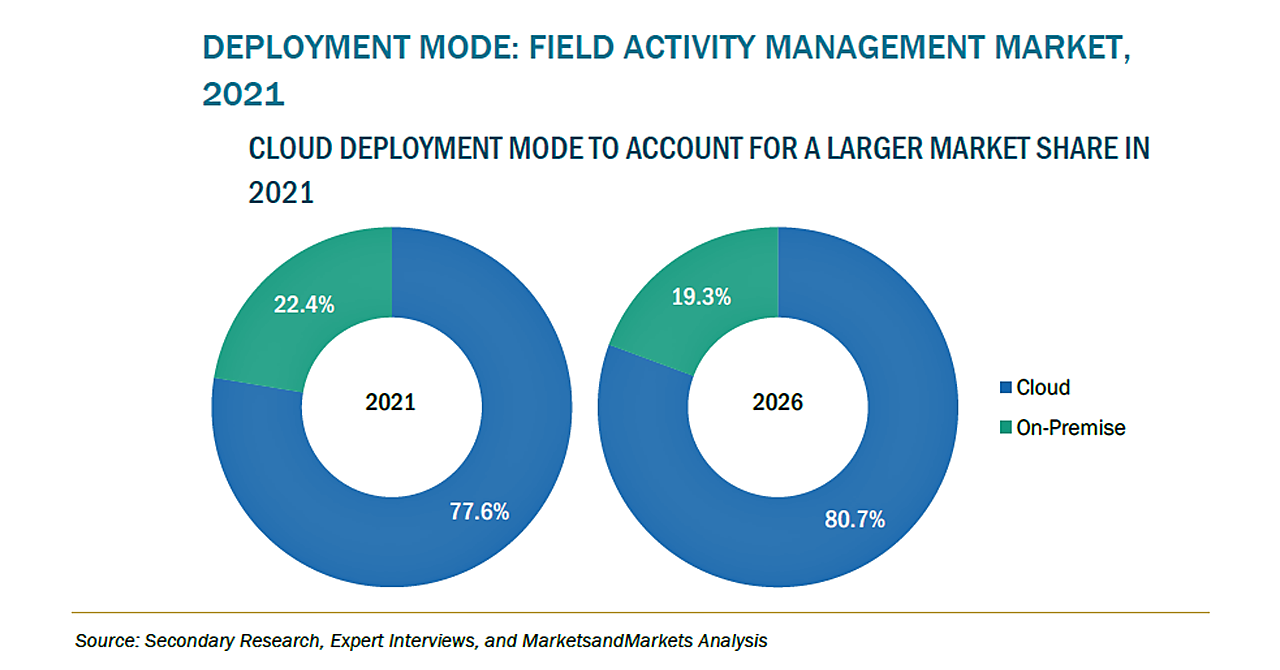 クラウドベースのフィールド活動管理ソリューションの導入が大きく促進されています。Cisco Global Cloud Index Forecastによると、クラウドのインターネットプロトコル(IP)トラフィックは、2015年から2020年の間にCAGR30%で成長すると予想されています。クラウドベースの展開モデルには、有利な条件、簡単で高速な展開、フィールド活動ソリューションのより俊敏な管理・運用などのメリットがあります。クラウドプラットフォームは、1つの統合プラットフォームを提供することで、地理的に分散しているビジネスユニットのニーズに対応しています。このテクノロジーの利点を活用するために、企業はオンプレミスのフィールド活動管理ソリューションから、クラウドで展開されるフィールド活動管理ソリューションへと移行しています。クラウドソリューションへの需要を考慮して、フィールド活動管理ベンダーは、コスト削減と高い投資収益率(RoI)の達成に役立つSaaSベースのソリューションの提供に注力しています。