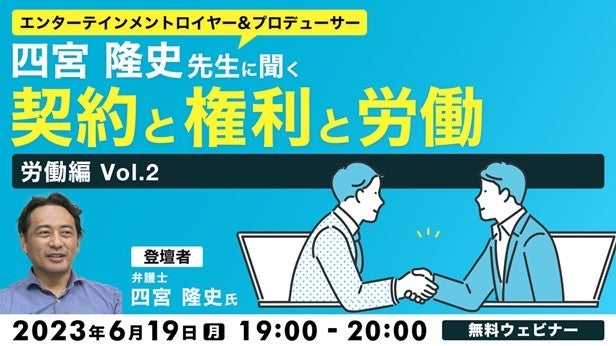 【映像クリエイター向け】「映適」発足でエンタメ業界の労働はどう変わる?6/19(月)無料セミナー「四宮隆史先生に聞く 契約と権利と労働 ~労働編Vol.2~」