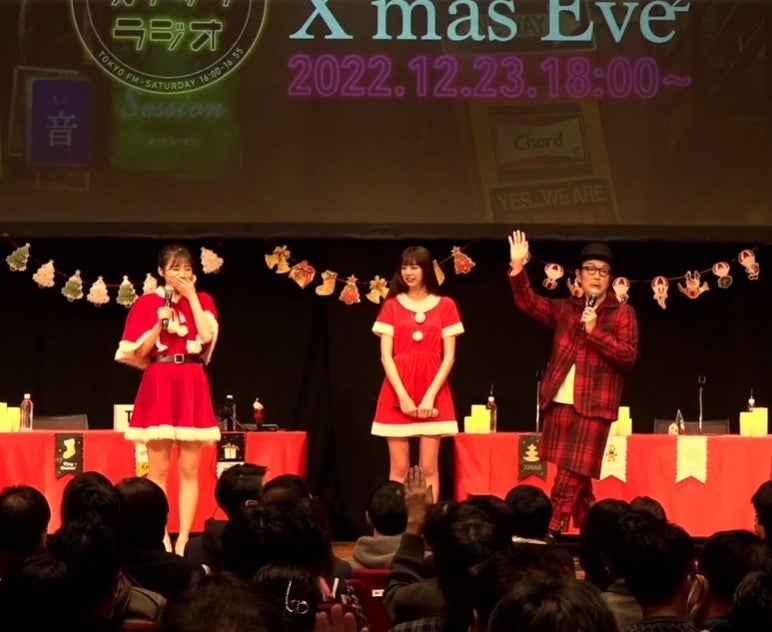 TOKYO FMをはじめとするJFN全国38 局ネットで放送中の番組、『リリー・フランキー「スナック ラジオ」』では、番組初の公開録音スタイルのイベント『リリー・フランキー「スナックラジオ」公録スペシャルon X’Mas Eve²』を2022年12月23日(金)にTOKYO FMホール(東京都千代田区)にて開催いたしました。店主のリリー・フランキー、アルバイト店員の川村那月、しゅうが対面人生相談や出し物(?)を実施。リスナーが突如登壇するなど、様々なミラクルの起こる特別な一夜となりました。このイベントの一部は2023年1月7日(土)、14日(土)の『リリー・フランキー「スナック ラジオ」』(土曜16:00~16:55)でオンエアいたします。また、このイベントはオンラインでも配信しました。アーカイブ配信チケットは現在販売中。アーカイブ配信の視聴期限は2022年12月31日(土)17:00となります。