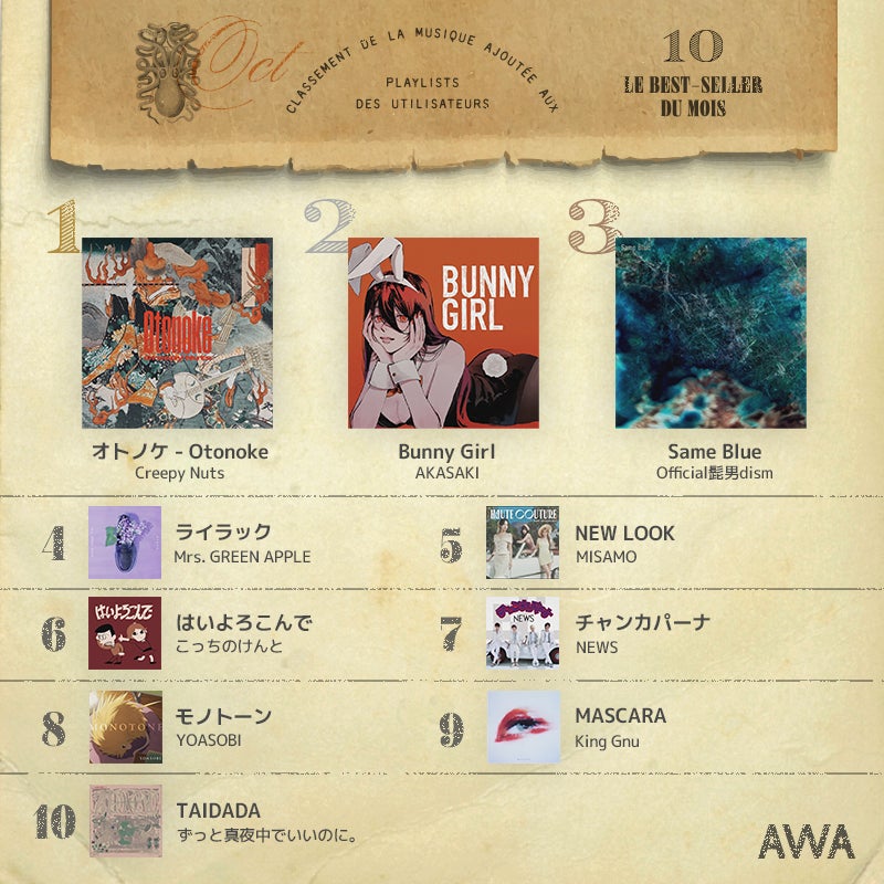 〜2024年10月度のAWAプレイリスト採用楽曲ランキングを発表〜