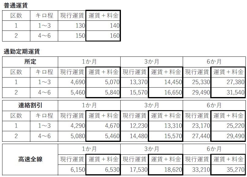 【料金設定後の運賃(大人)】(単位:円)