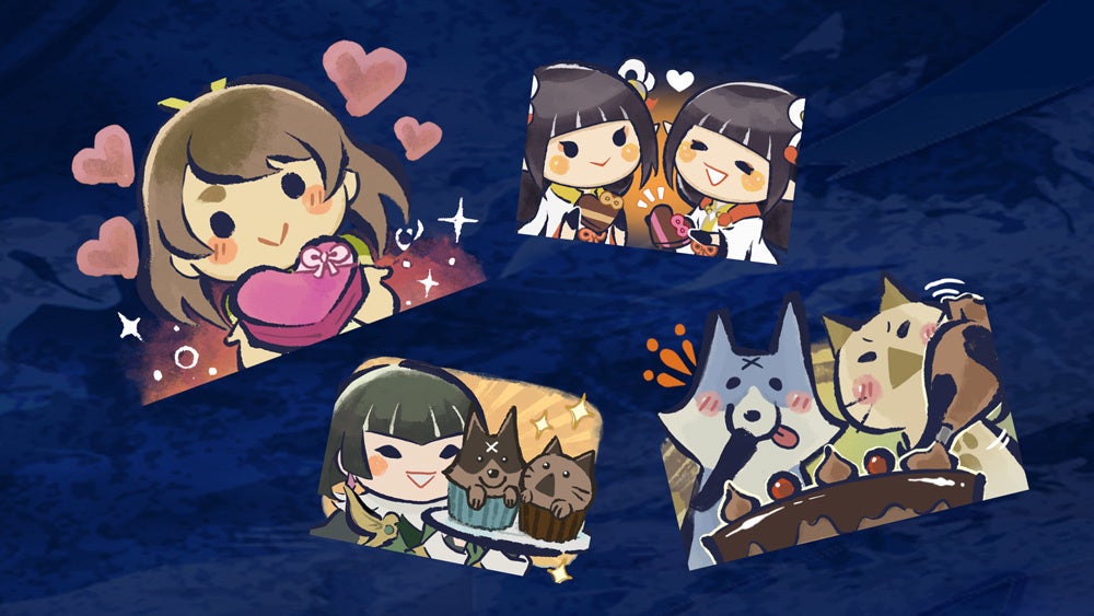 明日2月11日(金・祝)より、Nintendo Switch『モンスターハンターライズ』で、新たなイベントクエスト「プリンセスたちの宴」が配信スタート。クリアすると、スタンプ「チョコレートセット」が手に入るクエストとなっている。