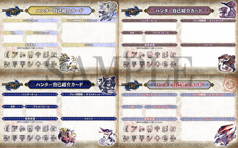 - 『モンスターハンターライズ』の狩友探しに役立つ、公式自己紹介カードが新デザインで登場!
