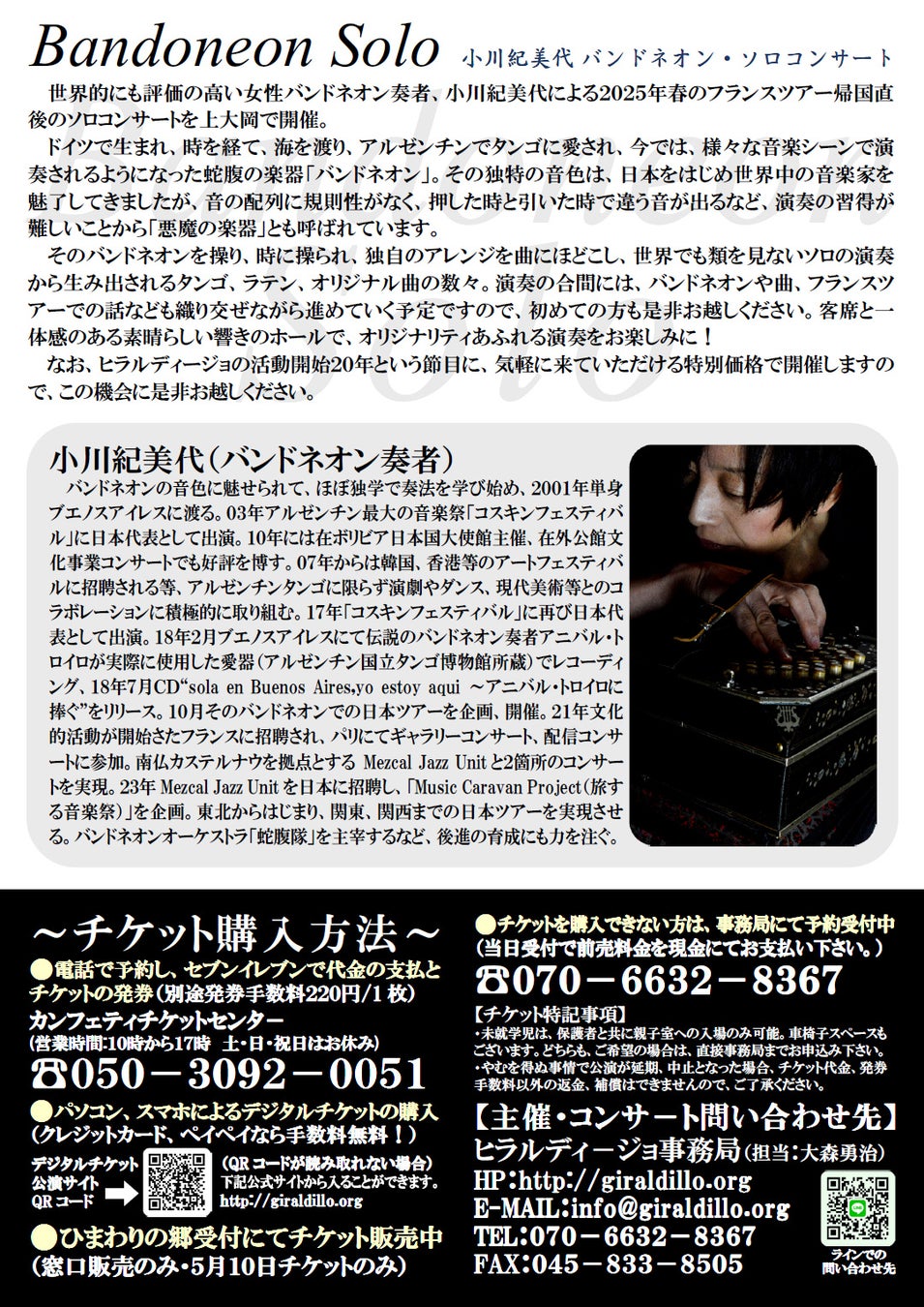 「Bandoneon Solo 〜小川紀美代 バンドネオンソロ・コンサート〜」