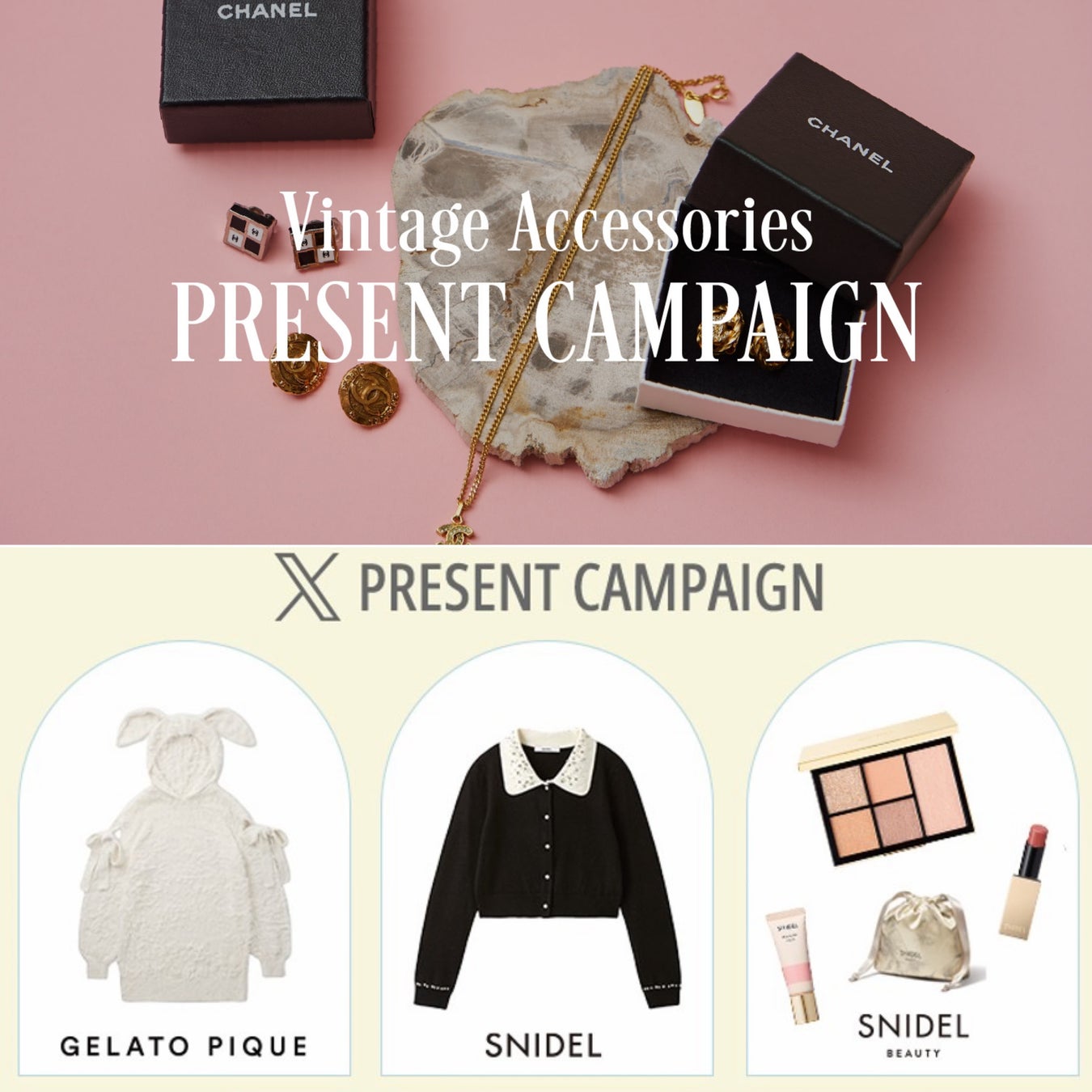 期間中、25,000円(税込)以上ご購入いただいたお客様の中から抽選で、〈CHANEL(シャネル)〉のヴィンテージアクセサリーを抽選で8名様にプレゼント!