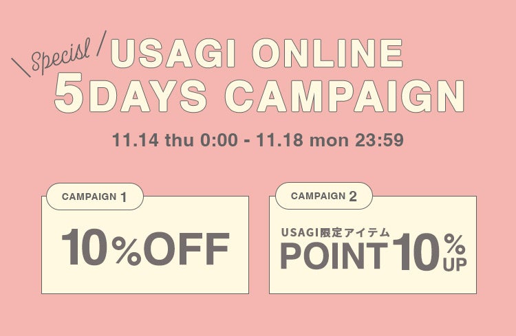 USAGI ONLINE・USAGI ONLINE STOREでのお買い物が、期間中は何度でも10%OFFでお楽しみいただけます。