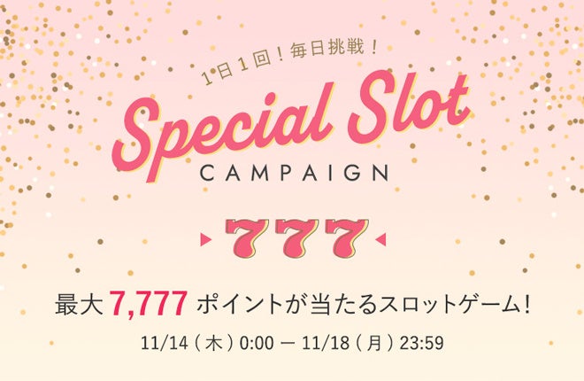 7が揃えば、最大7,777ポイントプレゼント!はずれ無しのスロットチャンス。