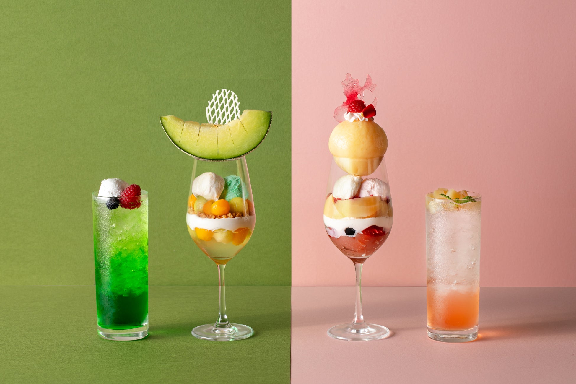 夏に旬を迎えるピーチとメロンが主役の華やかなパフェをご用意