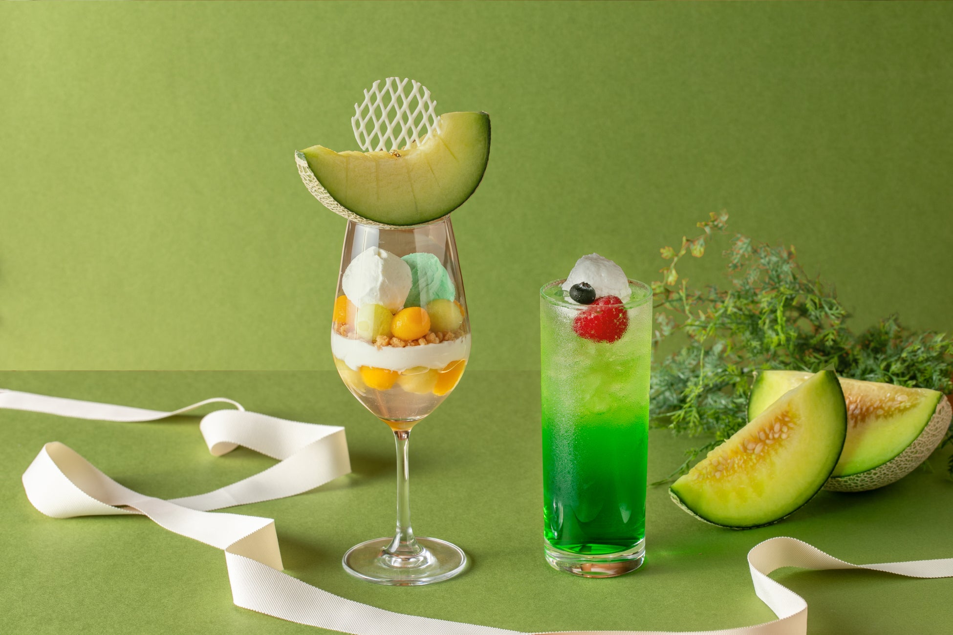 メロンパフェ&メロンクリームソーダ:2025年7月1日(火)~9月30日(火)