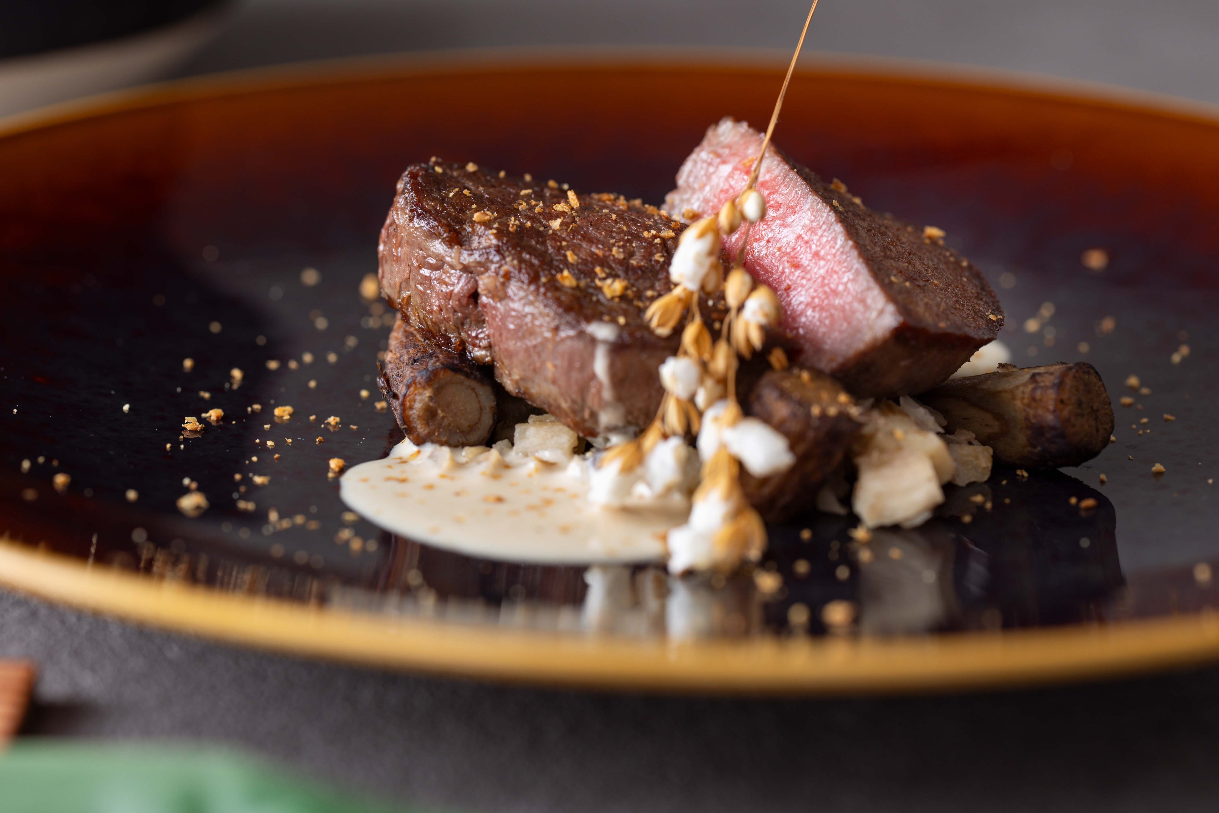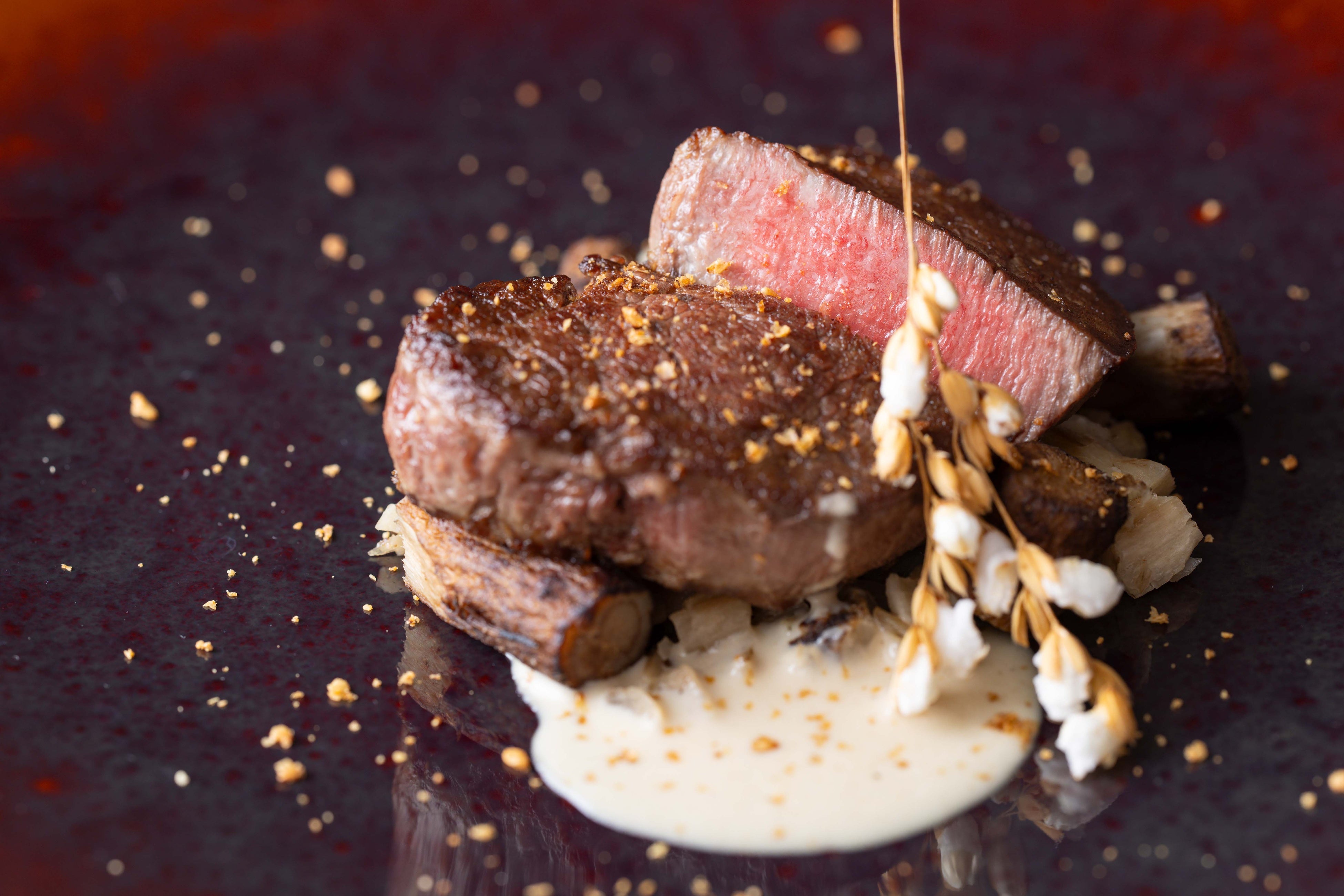 ・万葉牛の鍋煎 金胡麻と稲藁焼きの薫り添え