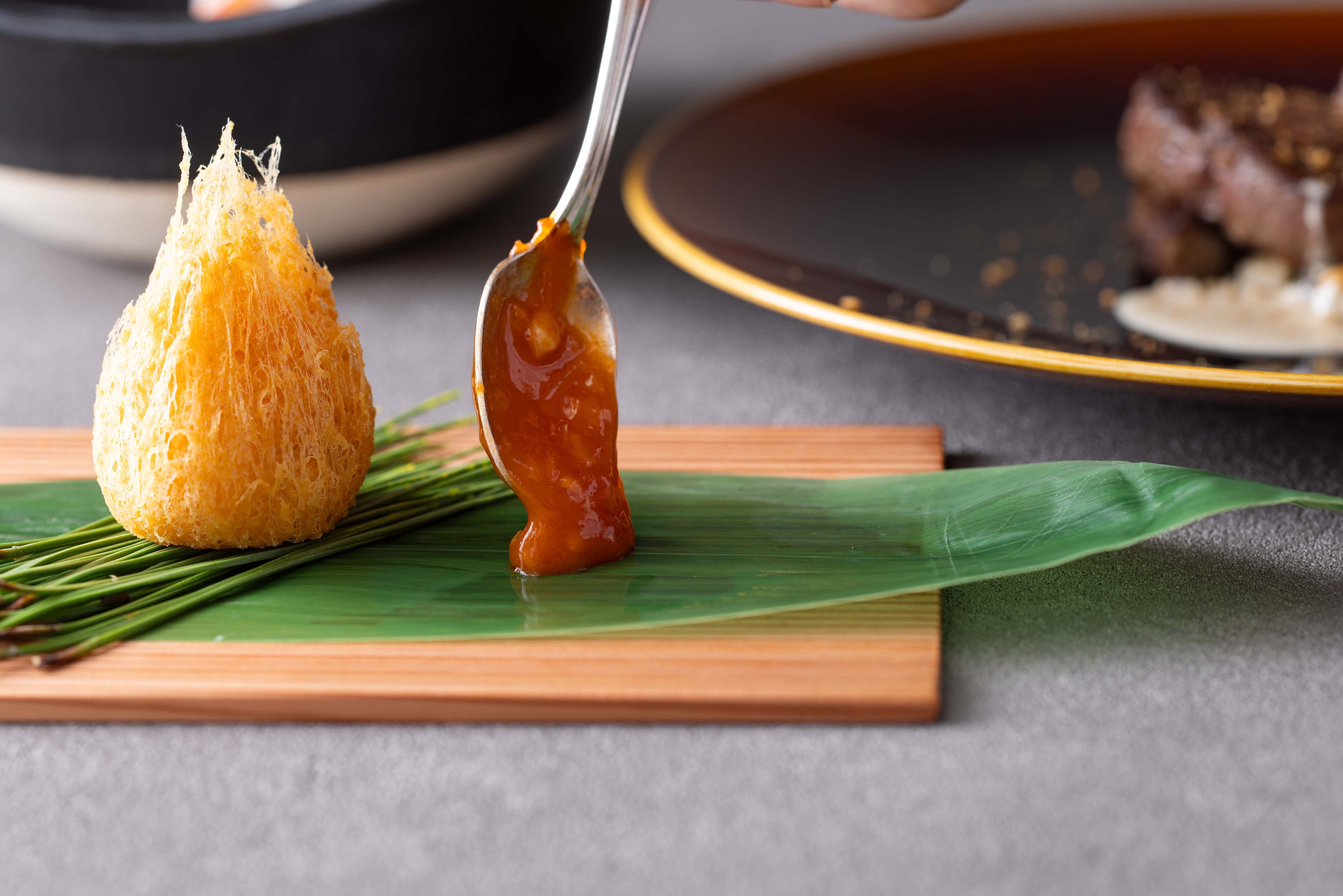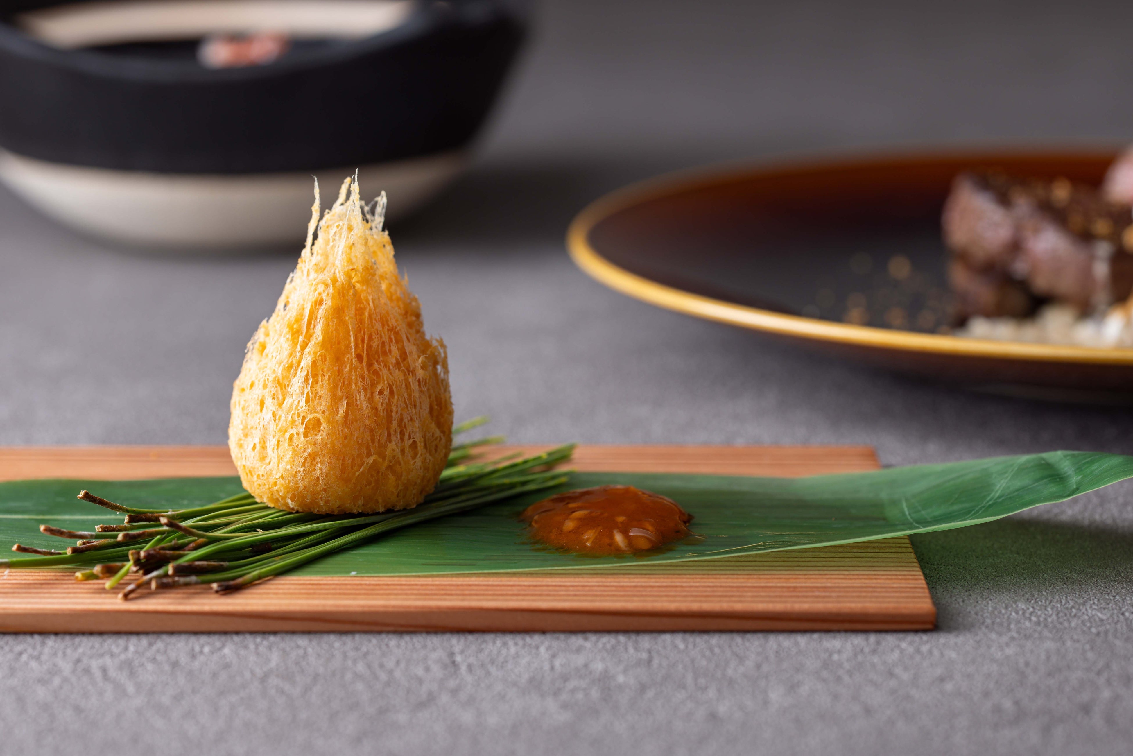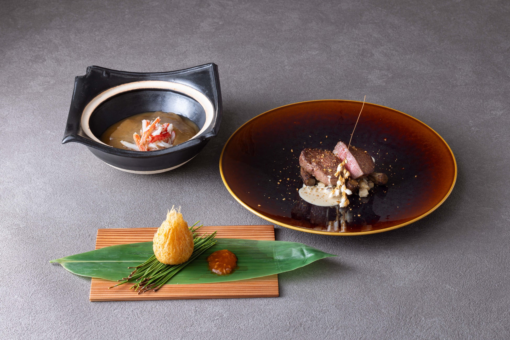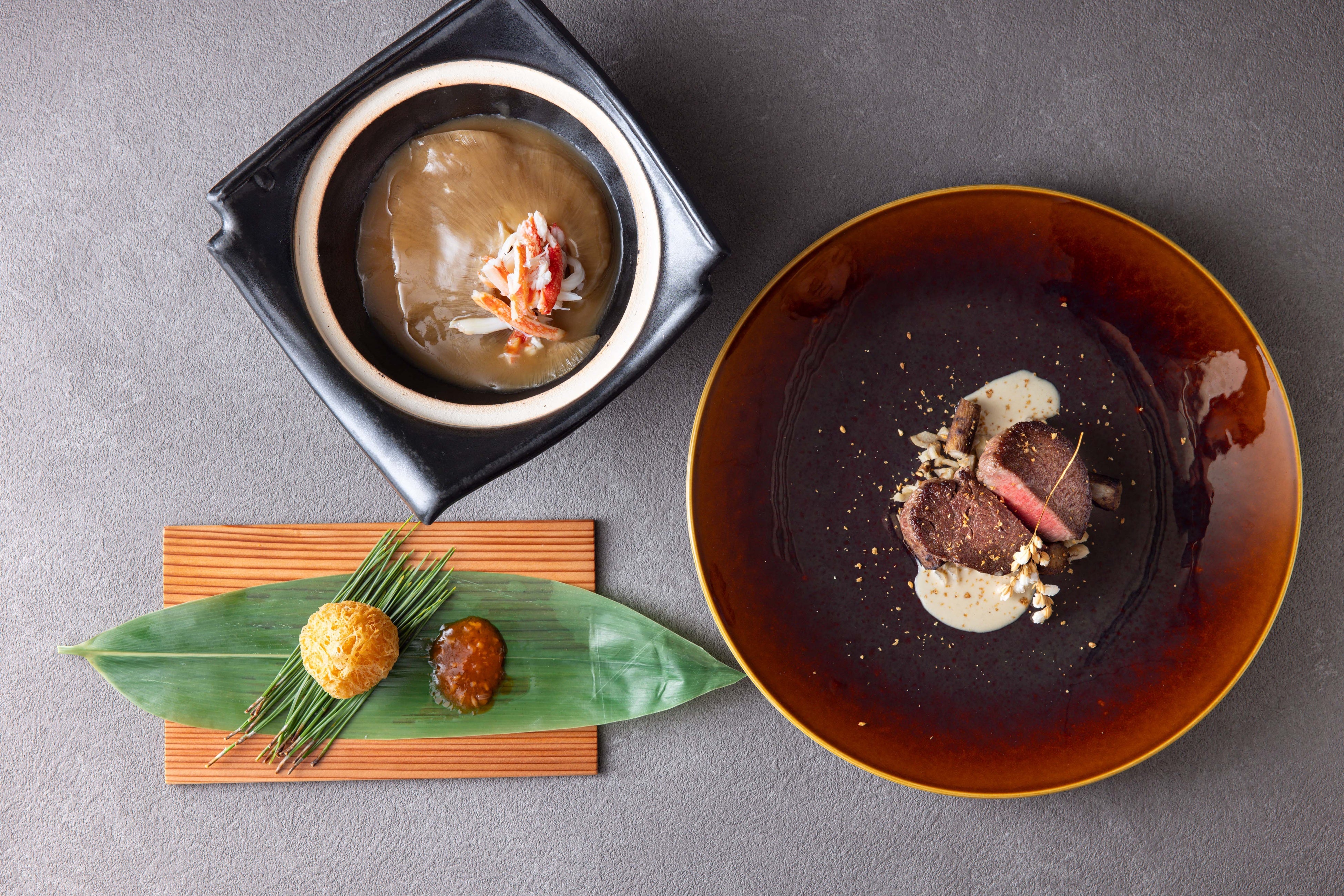 松葉ガニの蟹クリームを中国料理の古典技法である蜂巣揚げにアレンジした一皿や、濃厚なスープが特長の星ヶ岡のシグネチャー料理ふかひれの姿煮に境港直送の紅ズワイガニを添えてご提供いたします。肉料理は鳥取和牛の中でも厳しい選考基準を満たした「万葉牛」の脂の旨味を持ちながら、あっさりとした口溶けを活かし香り高い金胡麻ソースで味わえる一品に仕上げました。この他にも、良質な地下水で育てたとっとり琴浦グランサーモンや、脂がのった赤ガレイ、鮮度が命のジビエなど、日本海の海の幸や中国山地の山の幸という大自然の恵みをお楽しみいただけるコースとなっております。伝統的な上海料理をベースとしながらも鳥取の郷土料理の技法を取り入れた品々を是非ご堪能ください。