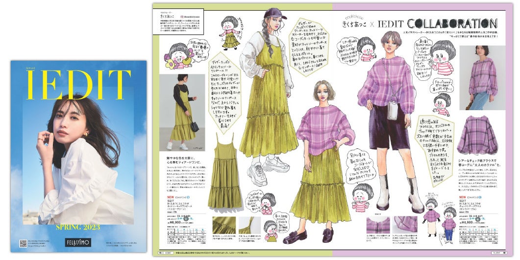 フェリシモが展開する「IEDIT[イディット]」は、インスタグラムフォロワー28万人以上のイラストレーター・きくちあつこさんとのコラボ第22作目となる春の新アイテム、シアー素材の「チェック柄ブラウス」や、ティアードデザインの「カットソーキャミワンピース」を発表、2月14日よりウェブ販売を行っています。しわが気になりにくく、ふわりと揺れるこだわりのギャザー遣いなど、きくちあつこさんらしい発想の新作はウェブ特集ページのほか、デジタルカタログでもチェックできます。