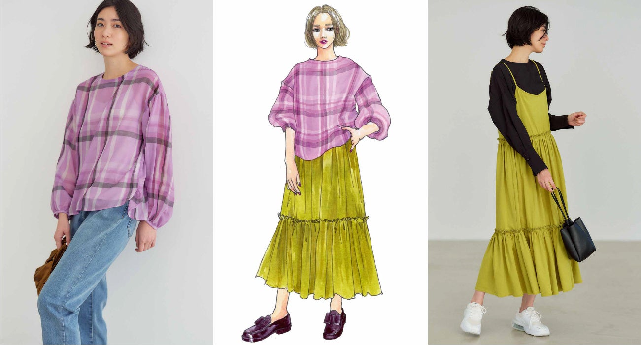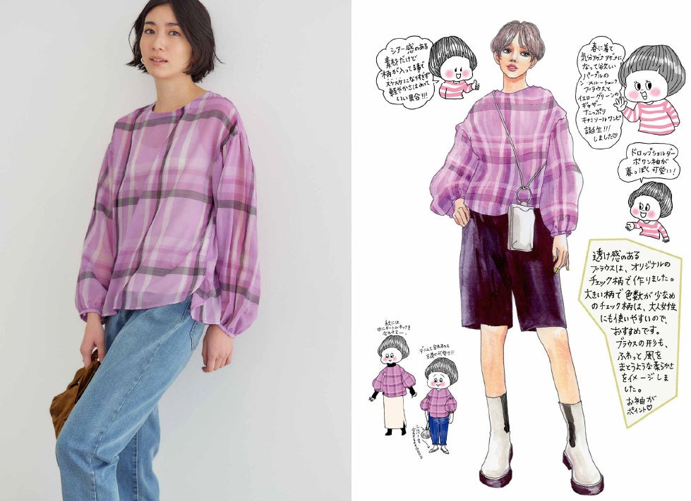 イラストレーターきくちあつこコラボ新作にふんわり透け感の「チェックシアーブラウス」や「カットソーキャミワンピース」などフェリシモ「IEDIT[イディット]」から2023年の春の新作登場