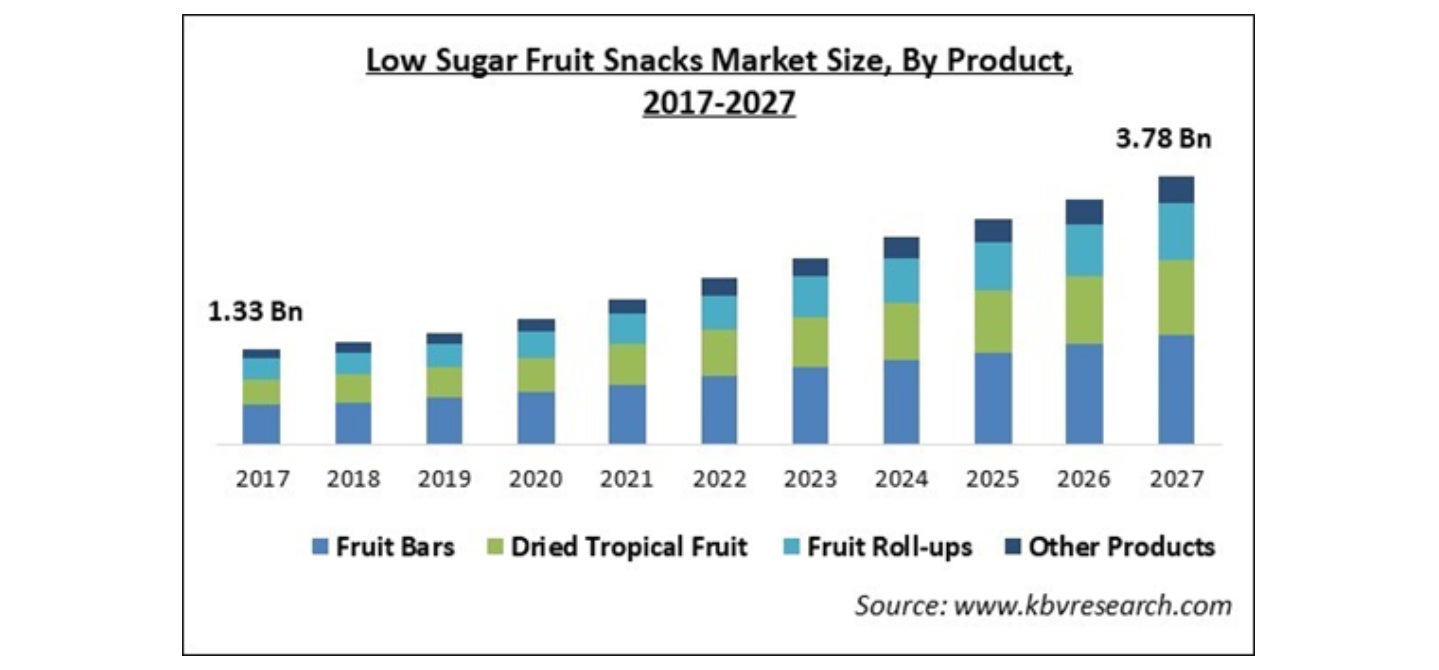 低糖質フルーツスナックの市場規模、2027年に37億8,590万ドルに到達見込み