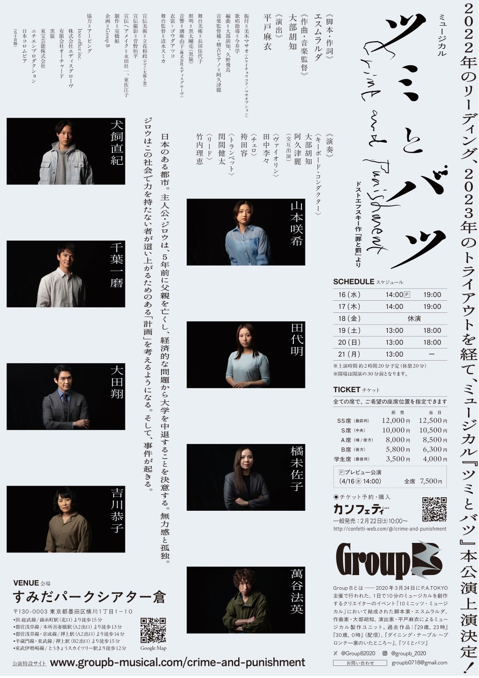 Group B主催、ミュージカル『ツミとバツ』が2025年4月16日 (水) 〜 2025年4月21日 (月)にすみだパークシアター倉(東京都 墨田区 横川 1-1-10)にて上演されます。