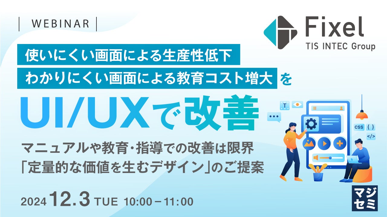 マジセミ株式会社は『「使いにくい画面による生産性低下」「わかりにくい画面による教育コスト増大」をUI/UXで改善』というテーマのウェビナーを開催します。