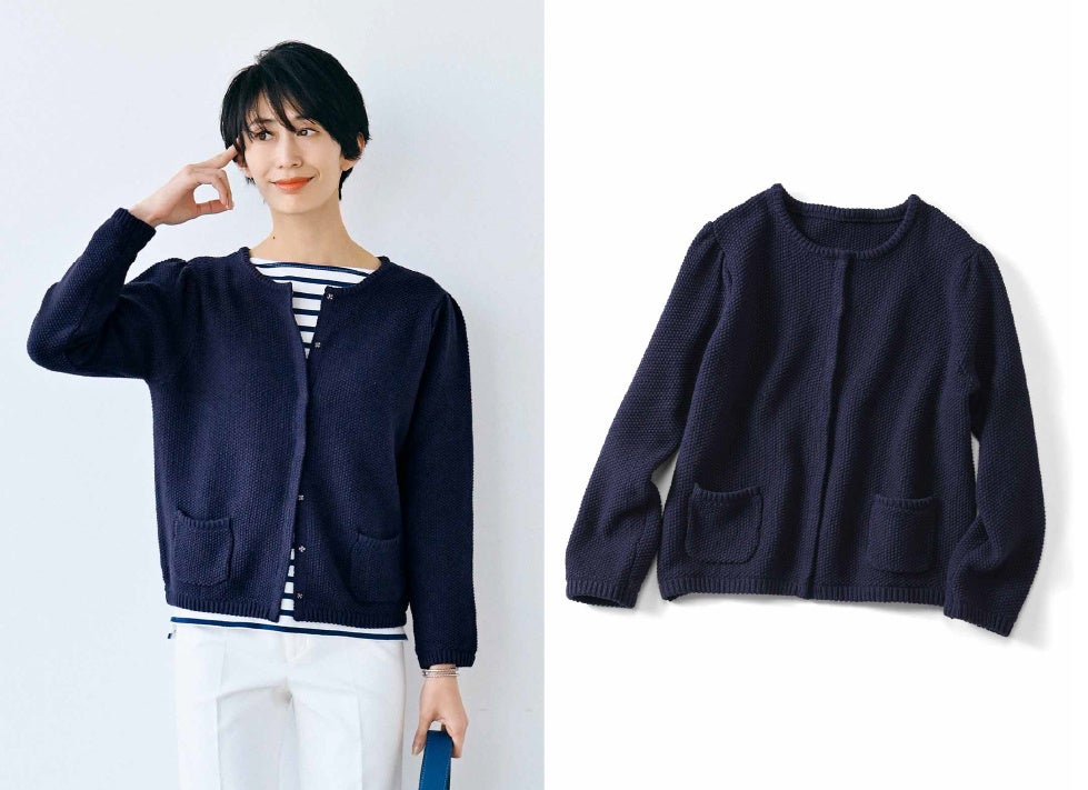 ジャケット気分で品よくはおれる春のニット