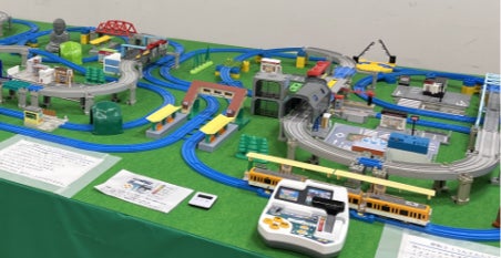 ジオラマの中を走るトイレールを専用のコントローラーで運転。
