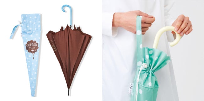 デザインは、傘のチョコレート菓子のキュートな存在感をそのまま再現したような〈ブルー〉〈ミントグリーン〉〈パープル〉の3種類です。