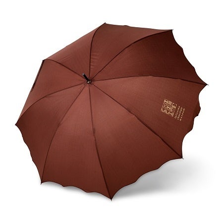表面には高級感のあるロゴプリントが入っています。傘本体の生地は、はっ水加工で雨をはじきます。