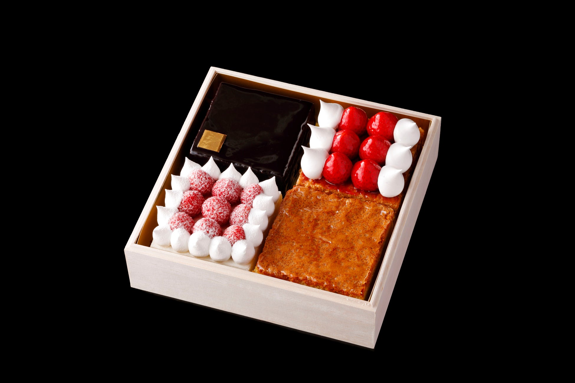 開業60周年記念として、スイーツおせち「中島菓子重」が今年のおせちのラインアップに新登場。ホテルニューオータニのスイーツを凝縮したお重は、人気スイーツのはじまりとなったストロベリーショートケーキをはじめ、生ケーキ4種の詰め合わせでご用意いたします。食後のデザートに、「スイーツおせち」を愉しんでみていはいかがでしょうか。