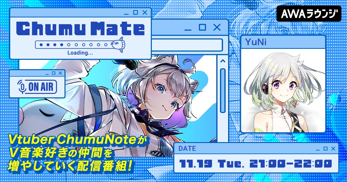 AWA株式会社(本社:東京都港区、代表取締役CEO:冨樫晃己)が運営する、サブスクリプション型(定額制)音楽ストリーミングサービス「AWA(アワ)」は、2024年11月19日21:00~22:00の1時間に渡り、無料で誰でも参加できるオンライン空間「ラウンジ」で、VTuberのChumuNoteがゲストアーティストと共に楽曲を深掘りし、V音楽好きの仲間を増やしていく音楽番組『ChumuMate』の第3回を開催いたします。