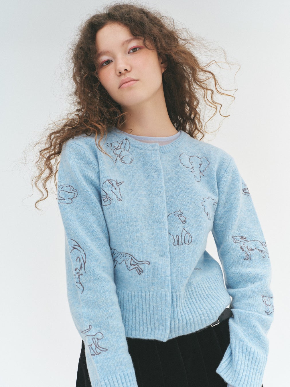 12種類のアニマルモチーフを繊細なタッチで描き刺繍で表現したニットカーディガン。