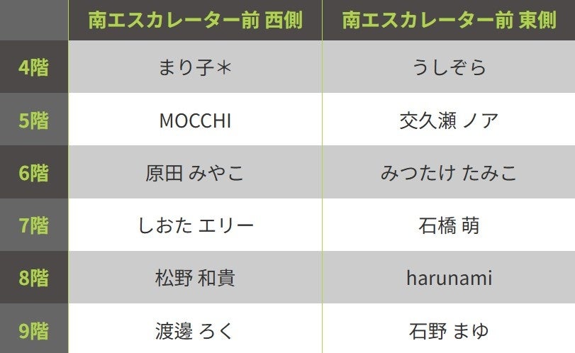 ◆大丸梅田店4~9各階 南側エスカレーター前