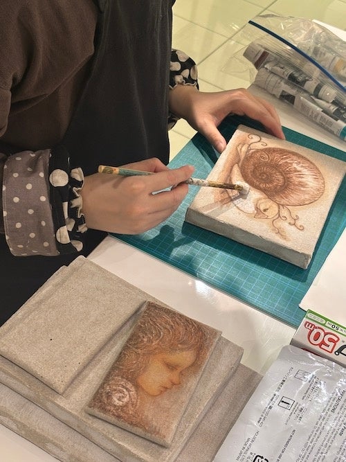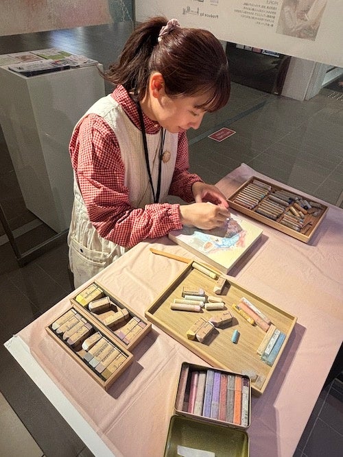 2025年276×276mm、オイルパステル、アクリル、コルク、木製パネル 税込37,400円