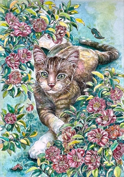 2024年227×158mm、ペン、水彩絵具、水彩紙、木製パネル 税込33,000円