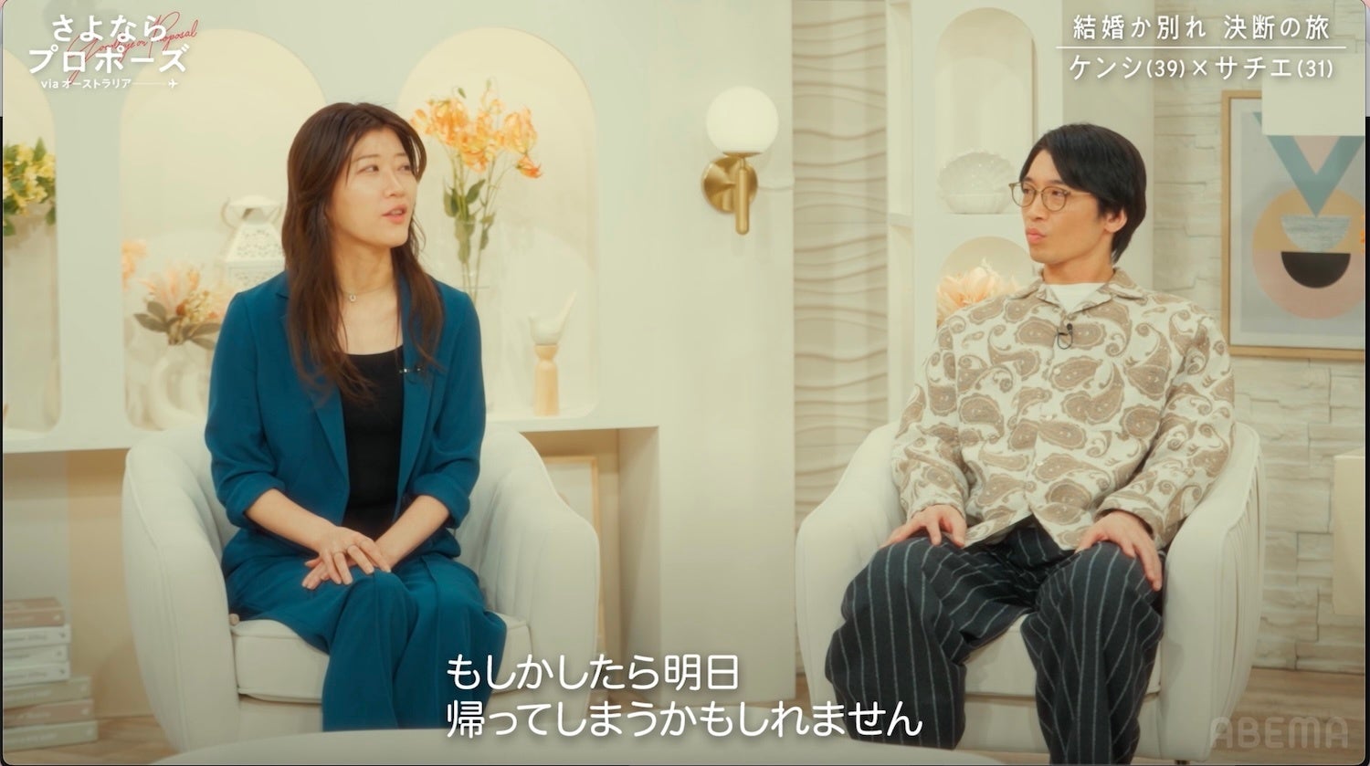 新しい未来のテレビ「ABEMA(アベマ)」は、「ABEMA」オリジナル結婚決断リアリティ番組『さよならプロポーズ via オーストラリア』の第4話を、2026年3月26日(木)夜9時より放送し、放送終了後より無料見逃し配信を開始しました。