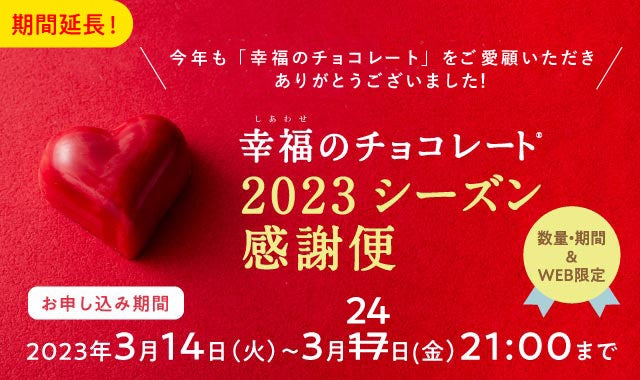 海外レアチョコの今季入手ラストチャンス「シーズン感謝便」の締め切りを延長(~3月24日21:00まで)「幸福(しあわせ)のチョコレート®」が期間・数量・ウェブ限定で受け付け