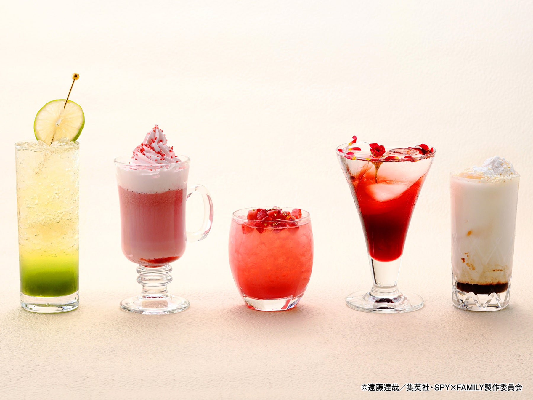 プラン特典として、オプションでご用意しているコラボレーションドリンクより1種をお召し上がりいただけます。ロイド、アーニャ、ヨル、ボンドをイメージした5種のドリンク(ノンアルコール)よりお好きな一杯をお選びください。さらにアクリルコースターは、シークレット1種を含む全6種類をプレゼントいたします。通常、コラボレーションドリンクをご注⽂いただくとランダムで1種類もらえるアクリルコースターが、宿泊プランご利用で全種類コンプリート!フォトジェニックかつ美味しさを追求したコラボレーションドリンクと、飾りたくなる可愛さのコースターにご期待ください。