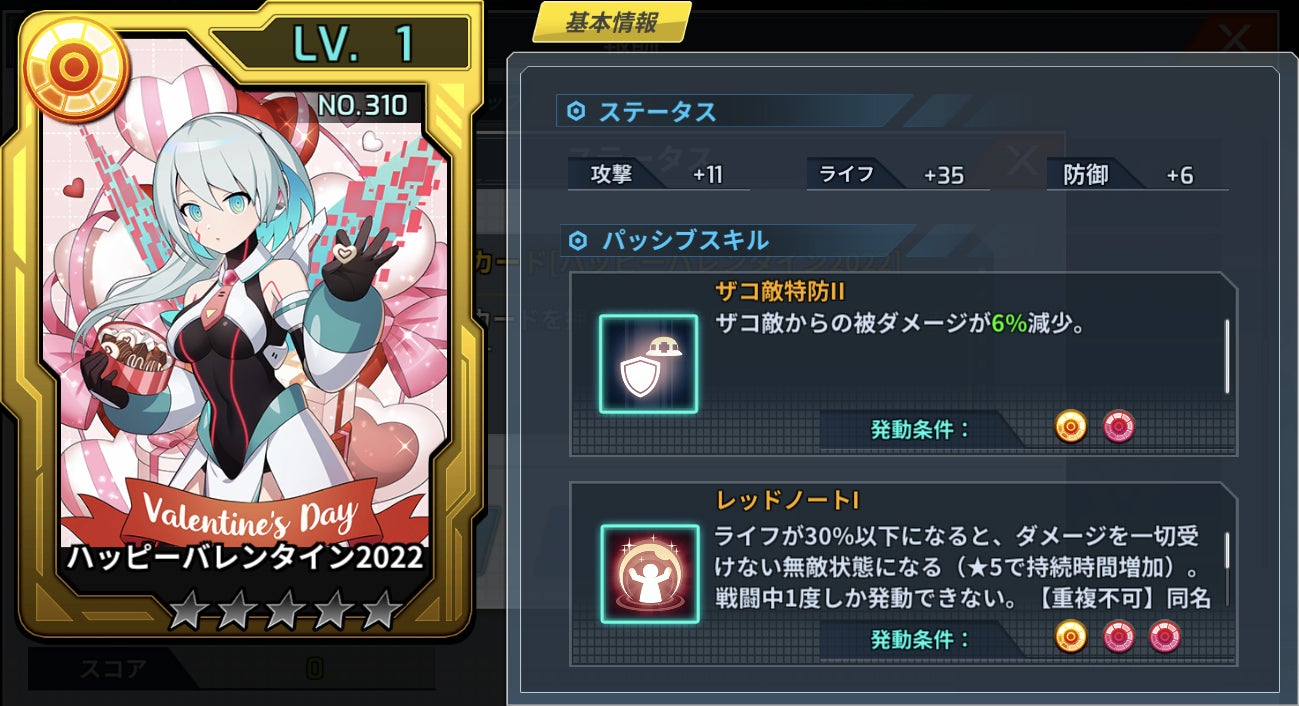 累計スコアが10,000に到達すると、カード[ハッピーバレンタイン2022]を入手することができます。