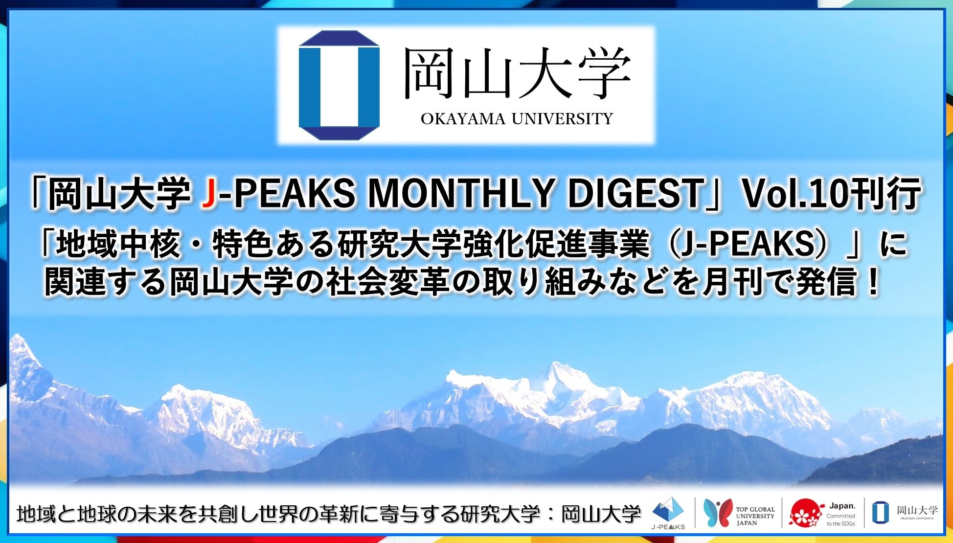 「岡山大学 J-PEAKS MONTHLY DIGEST」Vol.10刊行~「地域中核・特色ある研究大学強化促進事業(J-PEAKS)」に関連する岡山大学の社会変革の取り組みなどを月刊で発信!~