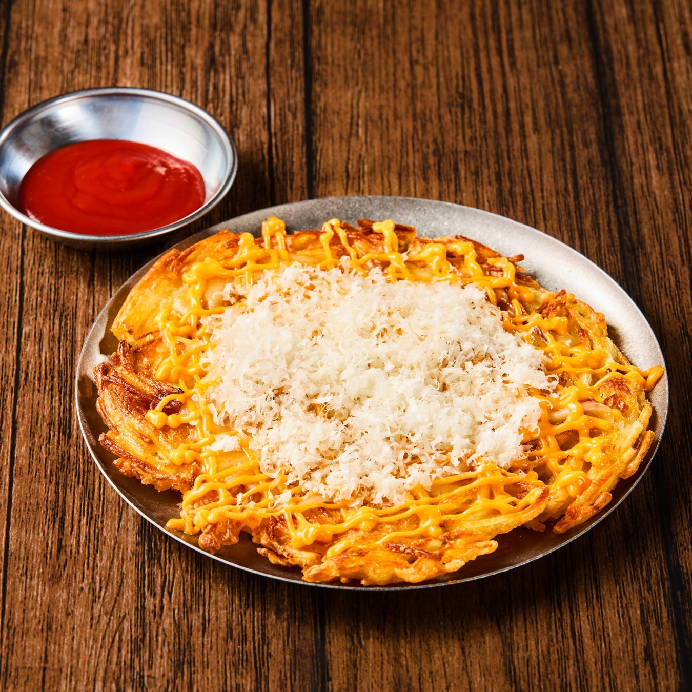 コチュジャンベースの旨辛ダレで炒め上げたイイダコ(チュクミ)を黄金チーズにダイブさせて味わう、まさに禁断のチーズ沼体験。 ピリッと刺激的な辛さを、チーズのコクとまろやかさが包み込み、口に運ぶたびに辛さ・旨み・濃厚さが重なり合う中毒性の高い味わいに仕上げました。