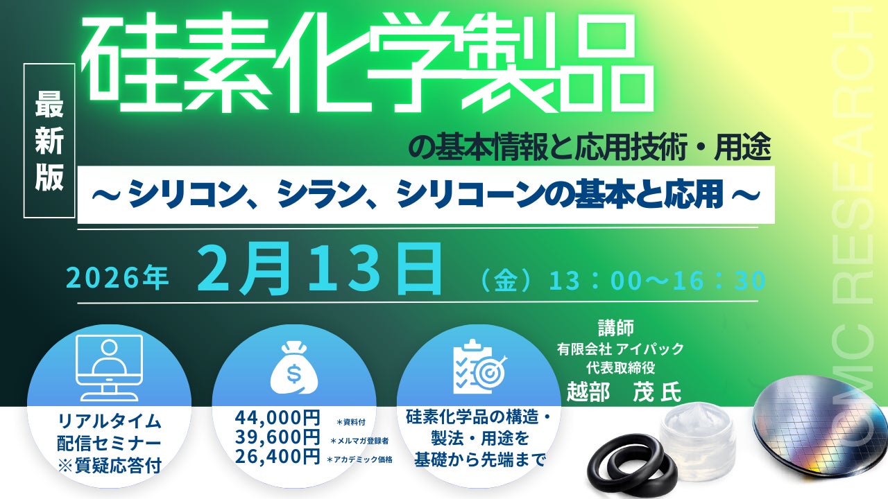 【ライブ配信/ZOOM】「硅素化学製品の基本情報と応用技術・用途 ~ シリコン、シラン、シリコーンの基本と応用 ~」セミナー開催!2月13日(金)主催:(株)シーエムシー・リサーチ