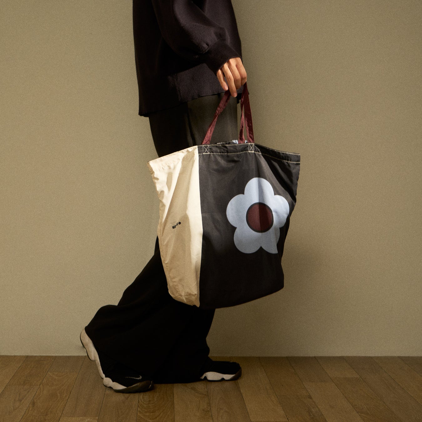 くすみカラーとデイジーモチーフが、スタイリッシュな2wayエコバッグ