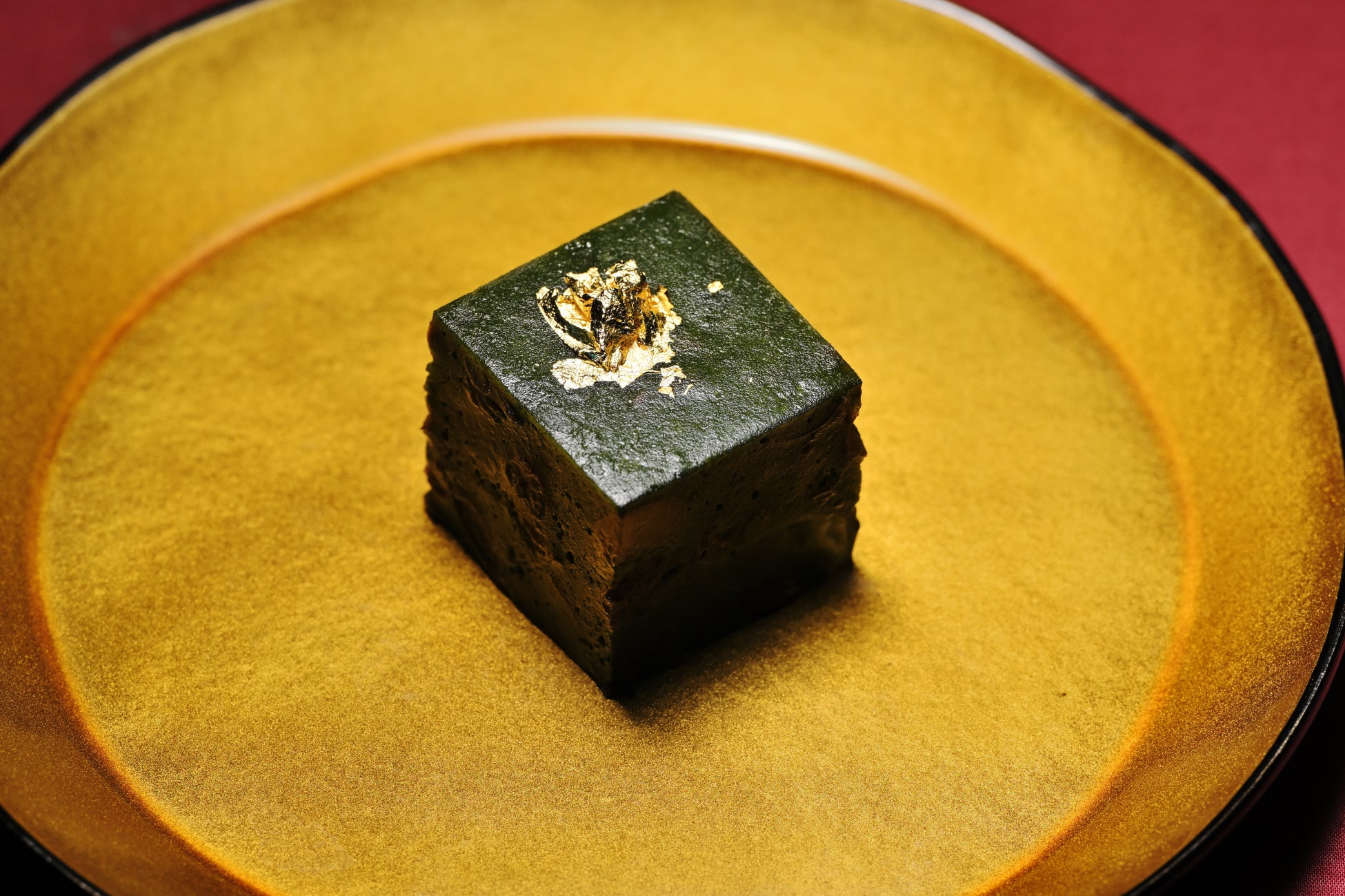 水物/桃 豆乳のジェラート、バニラのエスプーマ お茶菓子/抹茶羊羹